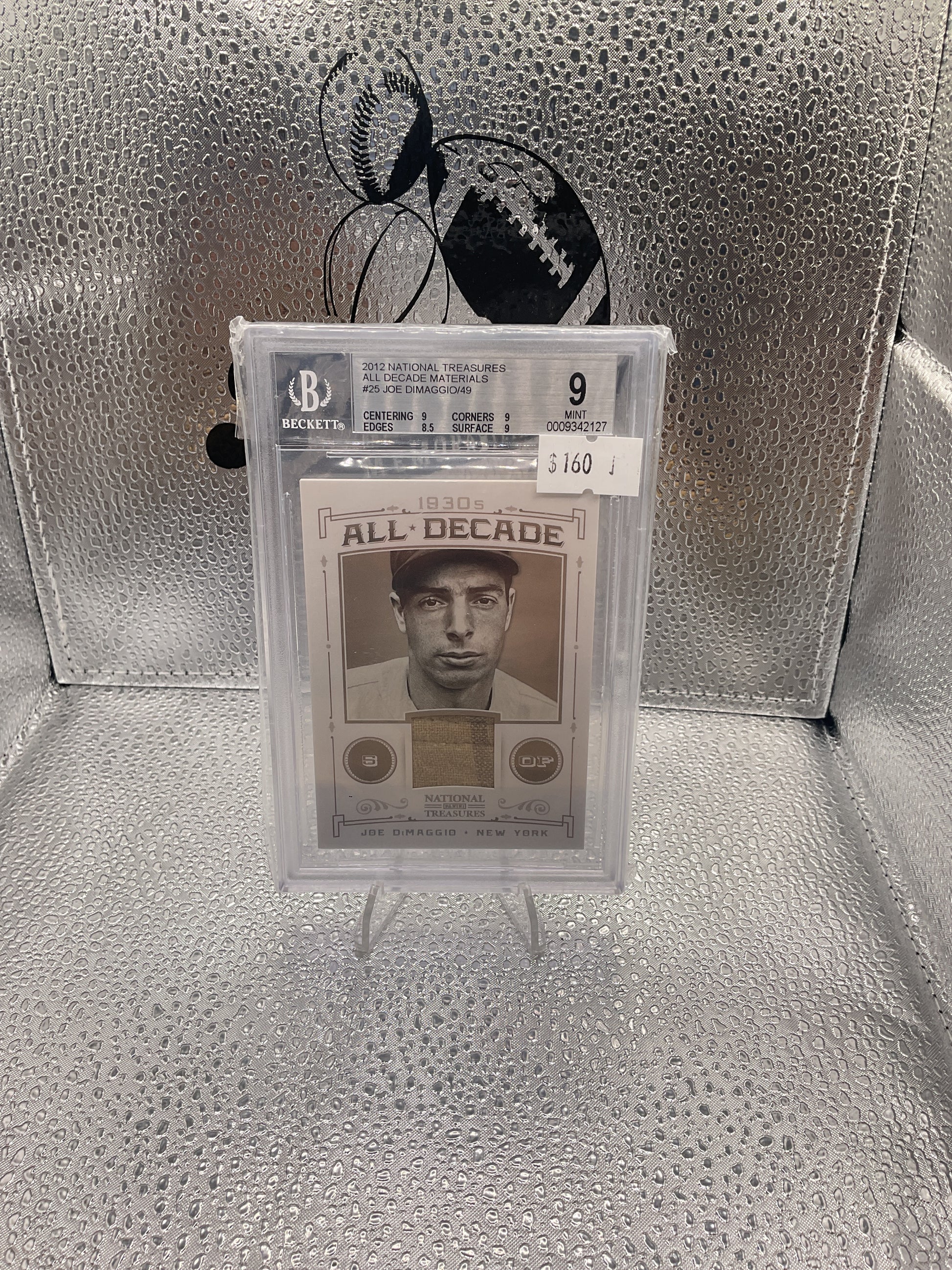2012 Panini National Treasures #25 All Decade Materials Joe Dimaggio 44/49 BGS 9